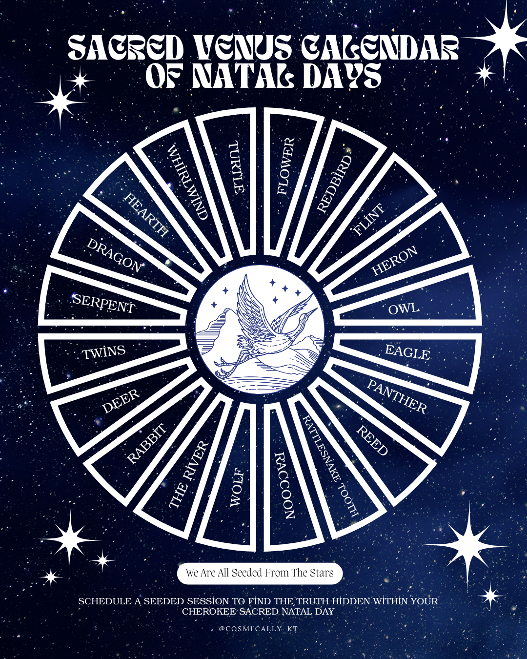 Seeded Sessions are ceremonial readings rooted in the Cherokee Sacred Venus Calendar that help you remember your guiding star, your elemental nature, and your ancestral medicine.